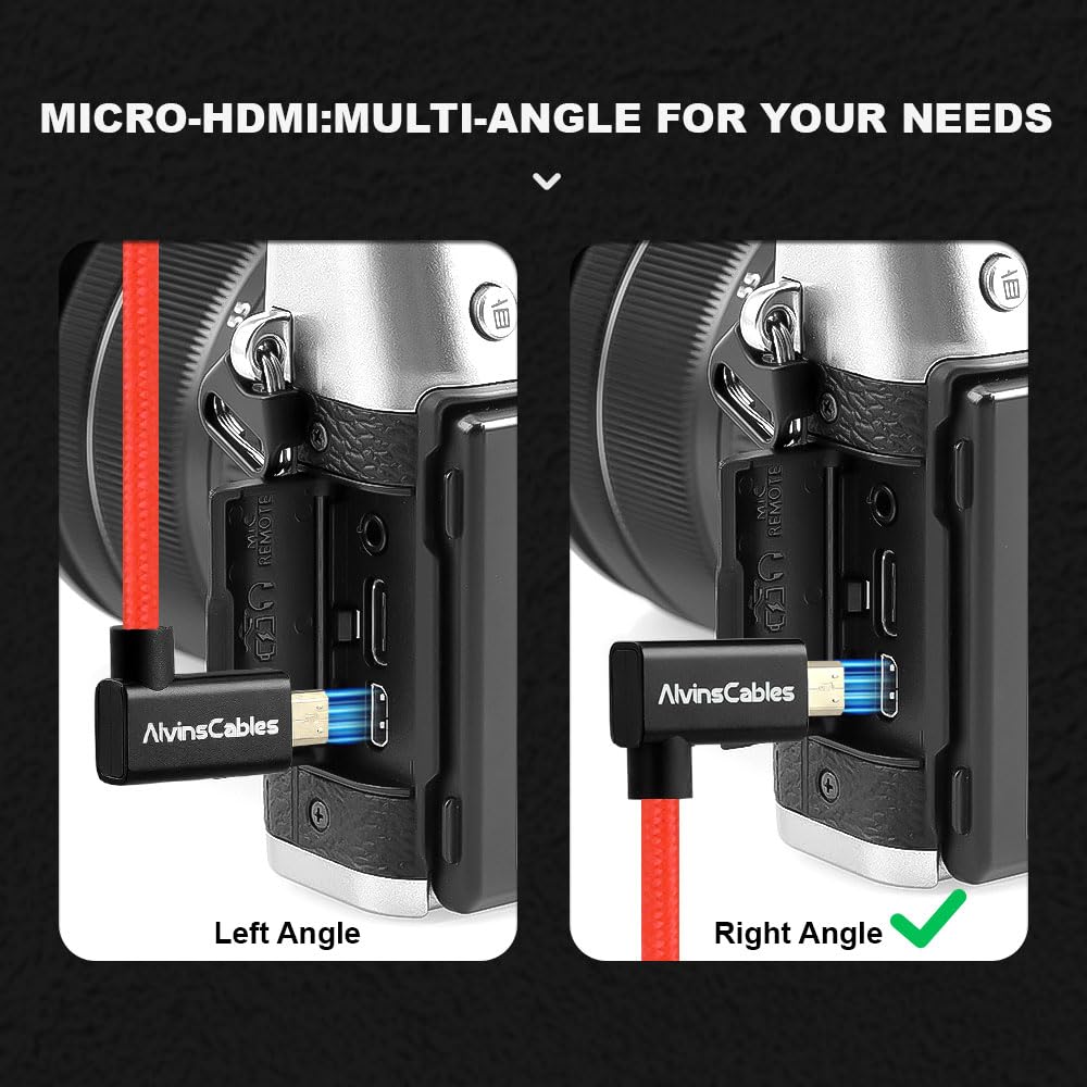 Alvin's Cables 8K 2.1 HDMI Cable 48Gbps High Speed Φ2.4mm Ultra-Thin HDMI 8K@60Hz 4K@120Hz for Canon C70, for Sony A7 A9, Blackmagic Camera, Atomos, SmallHD, Right Angle to Straight 1m| 39.3in