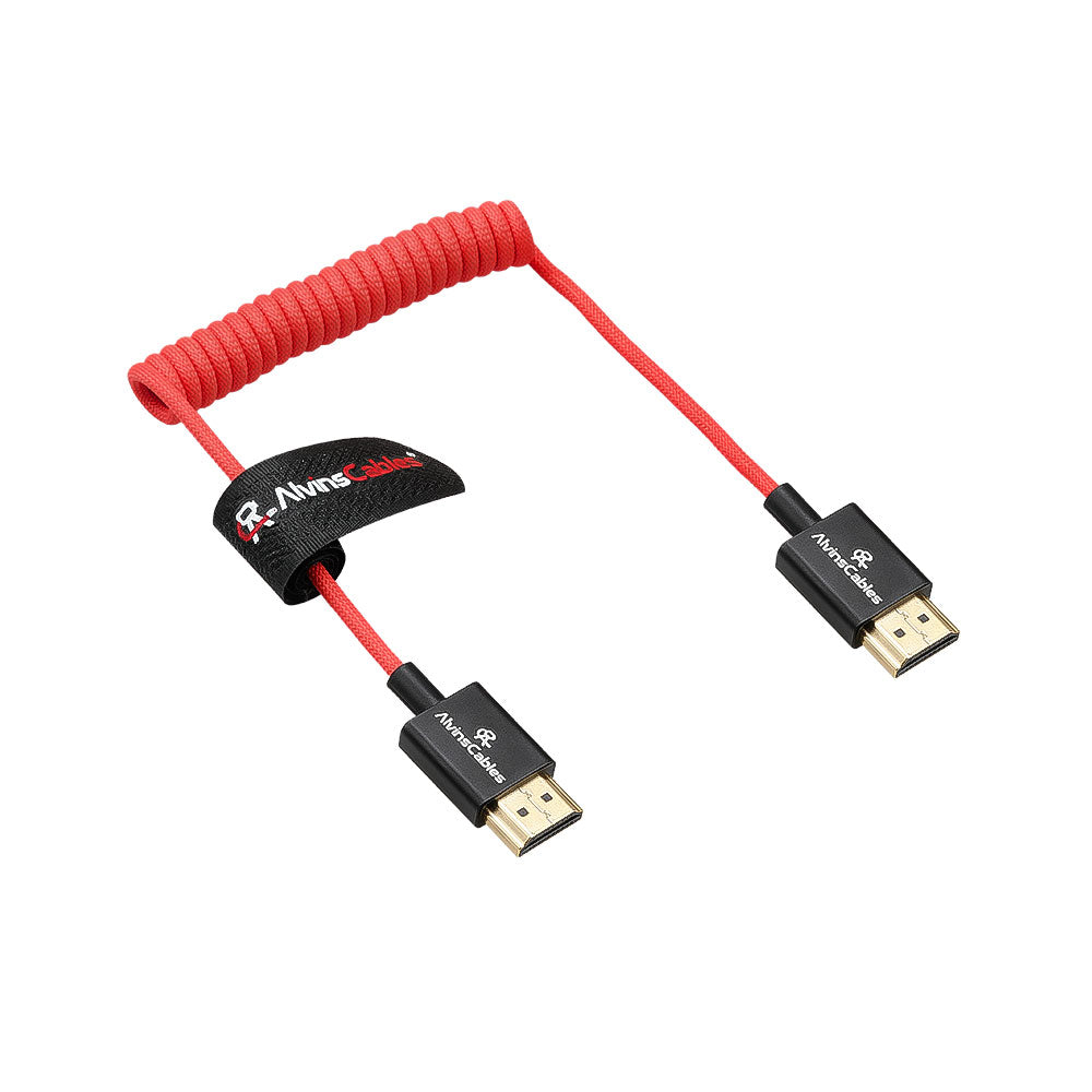 Alvin's Cables 8K HDMI Cable 2.1 48Gbps High Speed Φ2.4mm Ultra-Thin HDMI 8K@60Hz 4K@120Hz for Sony A7 A9, BMPCC, for Canon C70, for Atomos Ninja, for SmallHD, Up to Up Angle Coiled Cable