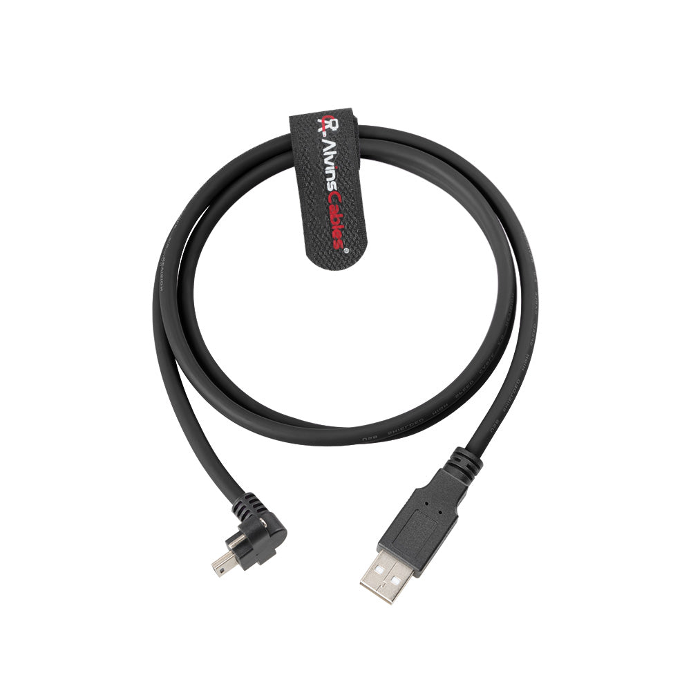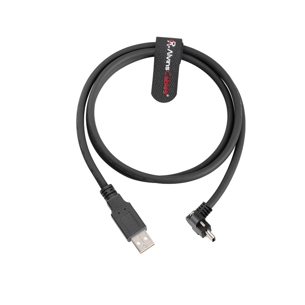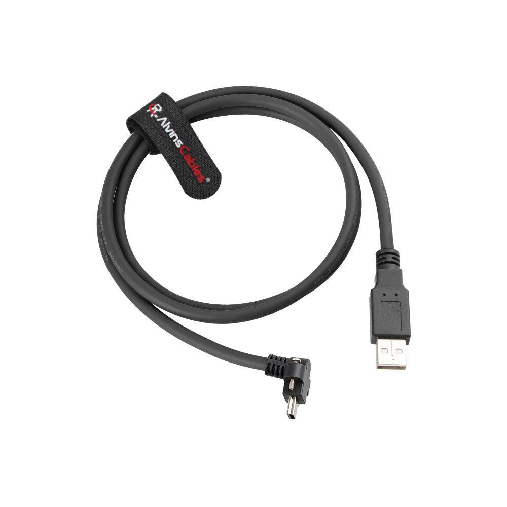 Alvin's Cables USB 2.0 Type-A to Locking Mini USB Up Angle Cable, 15mm Dual-Screw Spacing for Daheng Industrial Camera, High Flex Drag Chain Shielded, Convex Port, 1m/3.3ft
