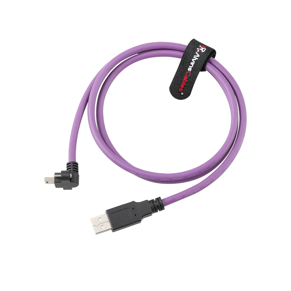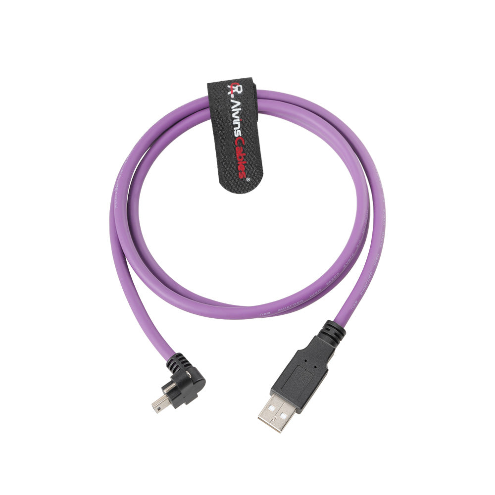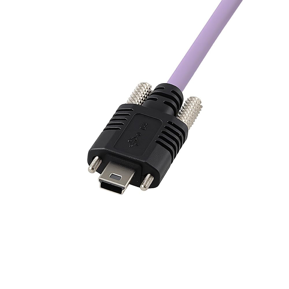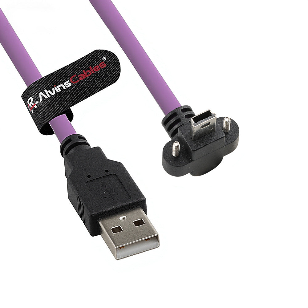 Alvin's Cables USB 2.0 Type-A to Locking Mini USB Down Angle Cable, 15mm Dual-Screw Spacing for Daheng Industrial Camera, High Flex Drag Chain Shielded, Convex Port, Purple