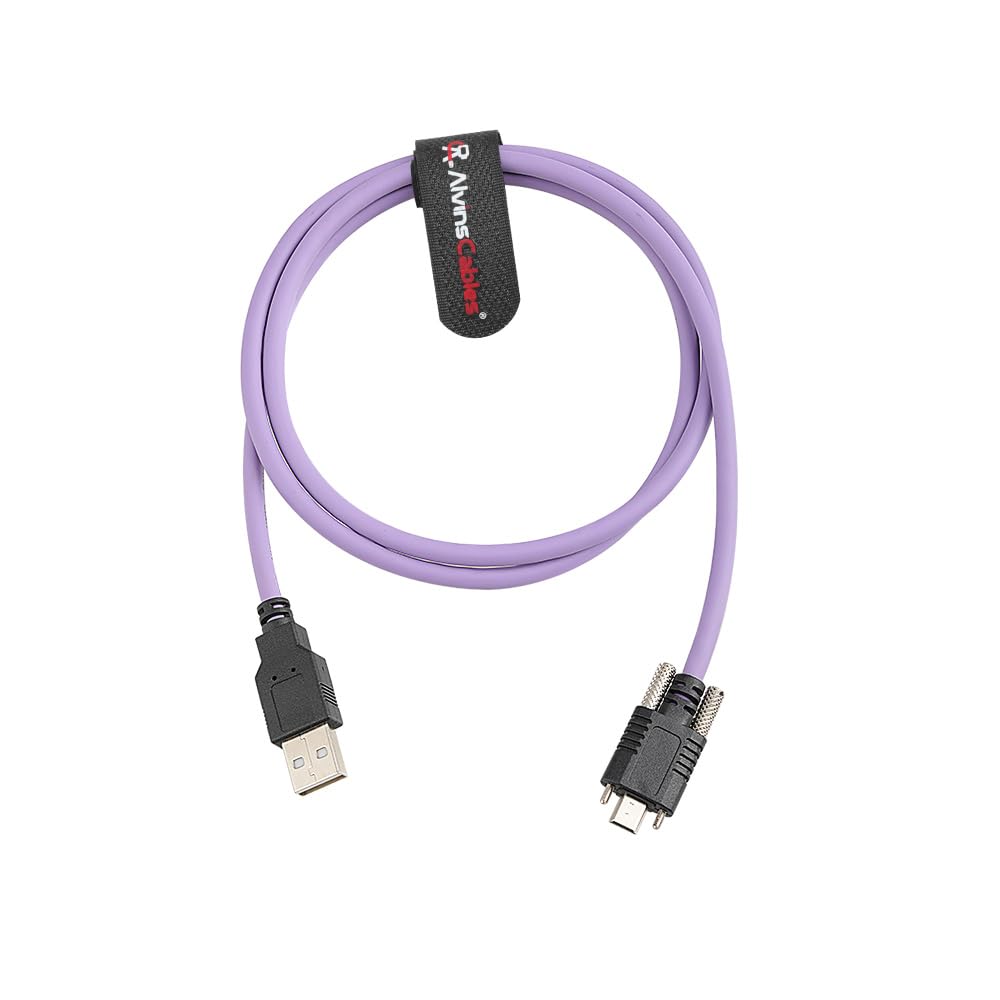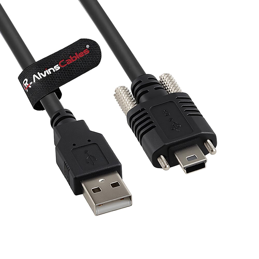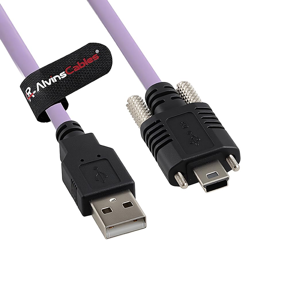 Alvin's Cables USB 2.0 Type-A to Locking Mini USB Cable, 13mm Dual-Screw Spacing for IDS Industrial Camera, High Flex Drag Chain Shielded