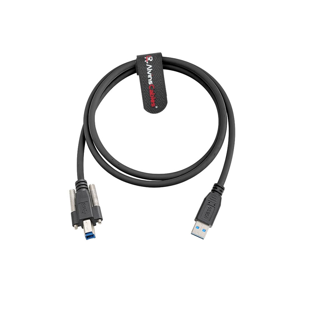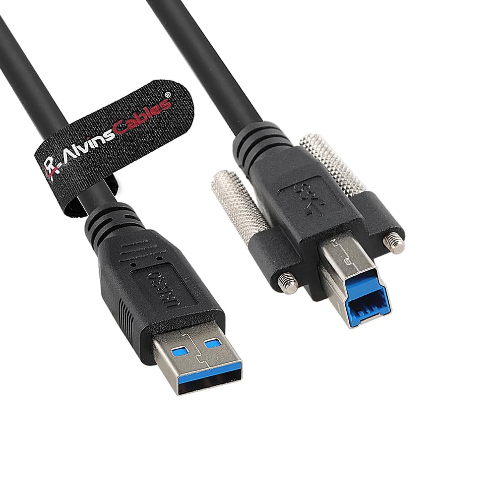Alvin's Cables USB 3.0 Type-A to USB-B Screw Lock Data Cable for Machine Vision Industrial Camera, Printer, Scanner, 5Gbps High Flex Drag Chain Shielded