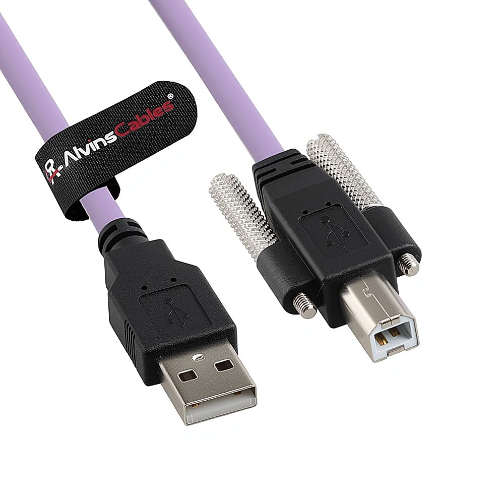 Alvin's Cables USB 2.0 Type-A to USB-B Screw Lock Data Cable for Machine Vision Industrial Camera, Printer, Scanner, 480Mbps High Flex Drag Chain Shielded