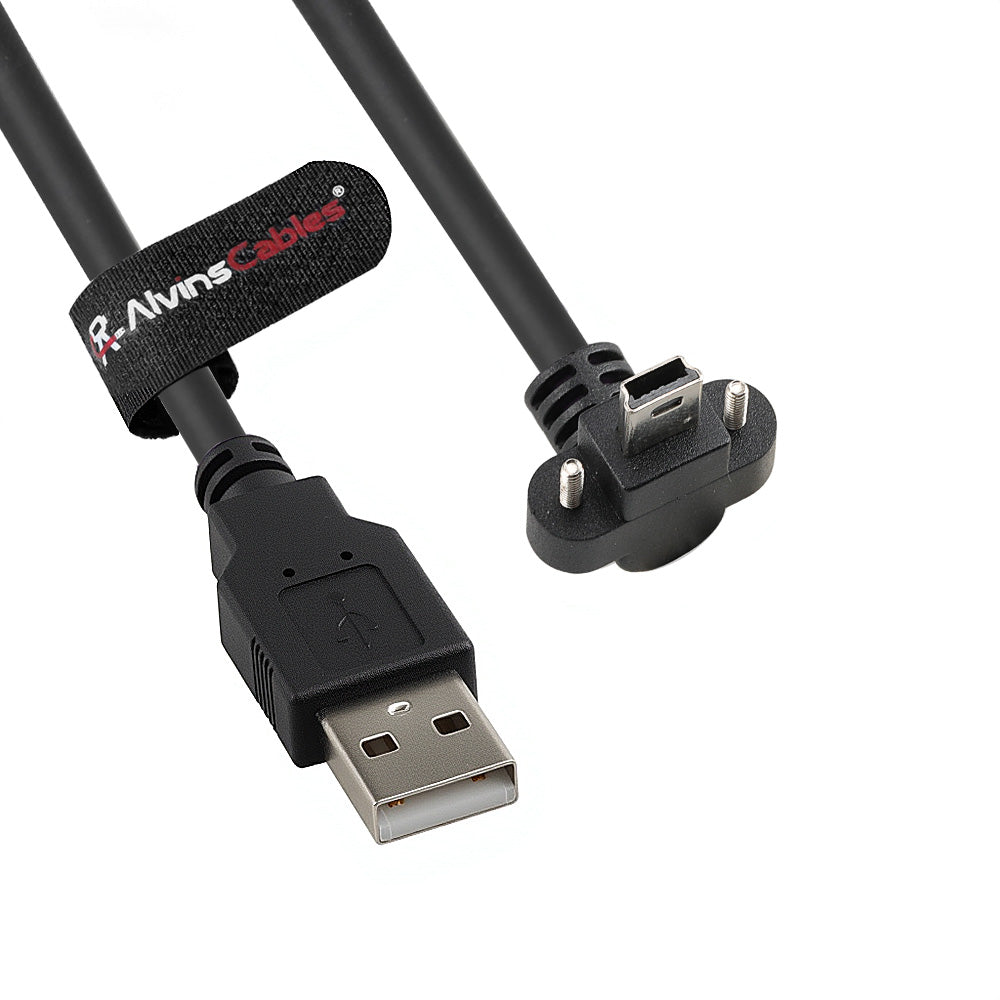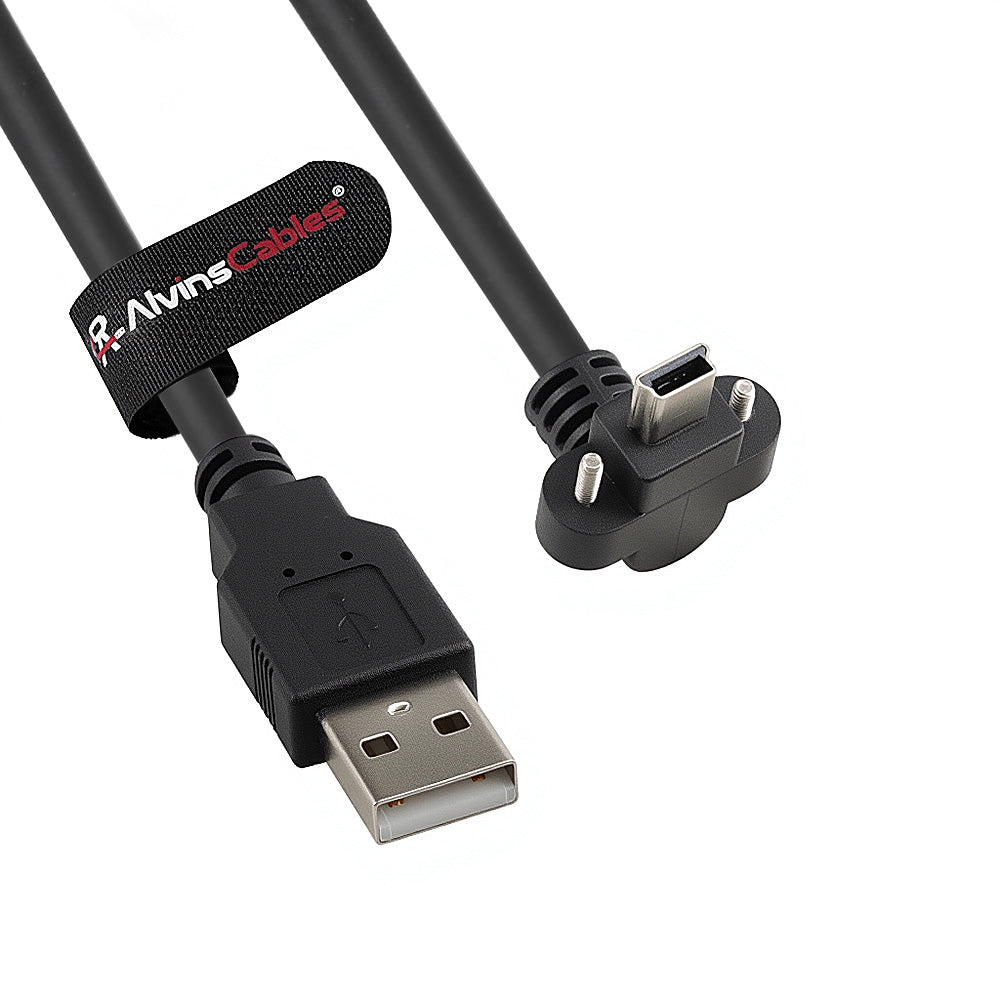 Alvin's Cables USB 2.0 Type-A to Locking Mini USB Down Angle Cable, 15mm Dual-Screw Spacing for Daheng Industrial Camera, High Flex Drag Chain Shielded, Convex Port