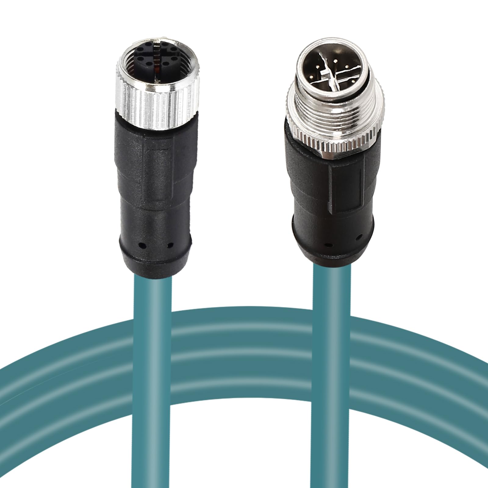 Alvins M12 8 Position X-Code Male to Female Aviation Sensor Connector Industrial Cable High Flexible Shielded Waterproof Cord for Device Network, Fieldbus Module